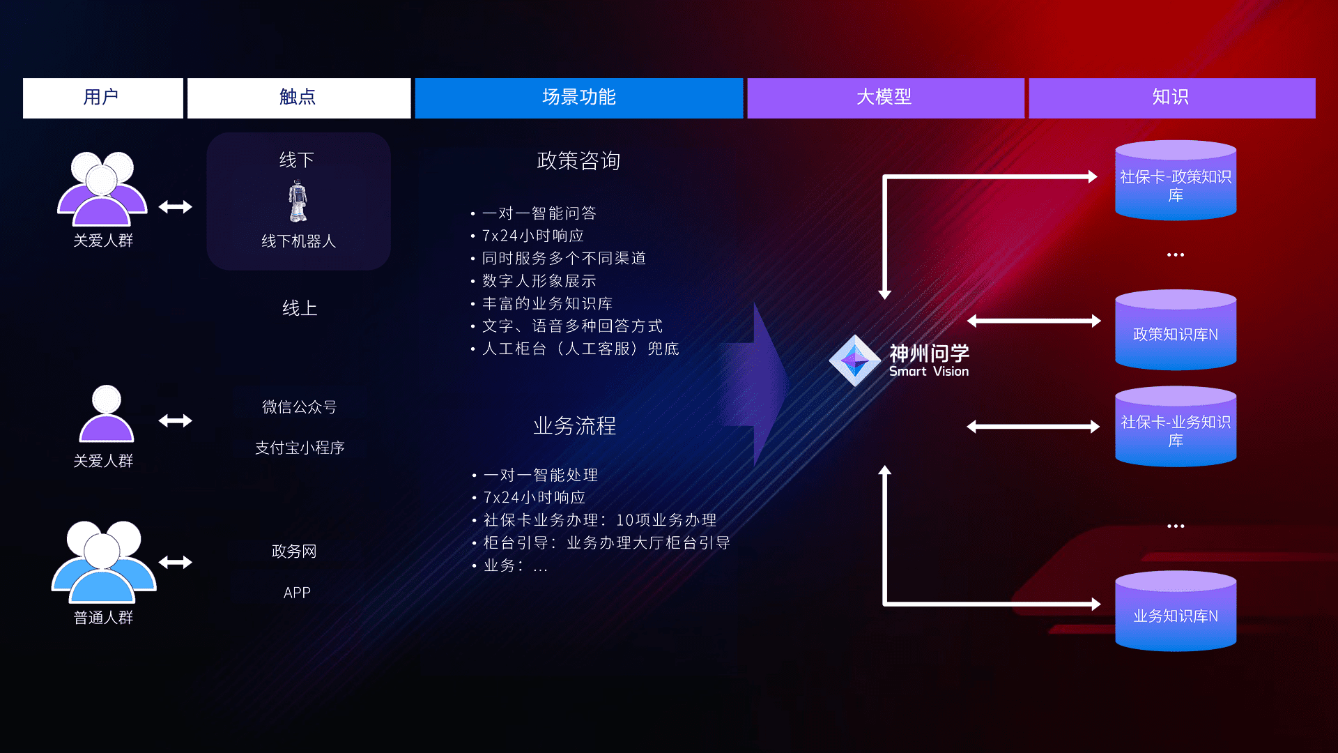 • 线上线下全覆盖:线上提供微信公众号、、、、支付宝小程序、、政务网、、、、app多种渠道,,,,与线下机器人形成完整服务体系。。。